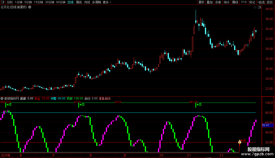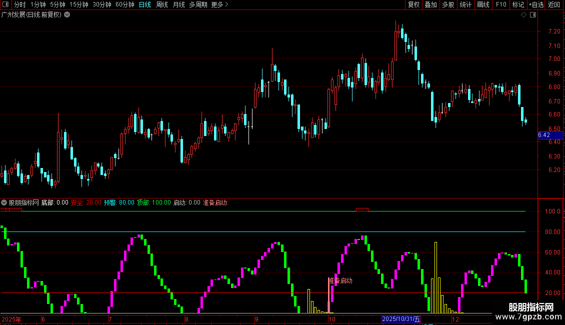 指标主要用于波段交易中的买卖时机判断。通过多组价格相对位置、动量和成交量能量模型,综合评估市场处于超卖或超买状态,并结合主力资金吸筹迹象,发出“买”“卖”及“准备启动”信号。当价格处于阶段低位、指标出现金叉且满足特定共振条件时提示买入;当指标高位回落并跌破阈值时提示卖出,适合中短线投资者捕捉阶段性高低点。