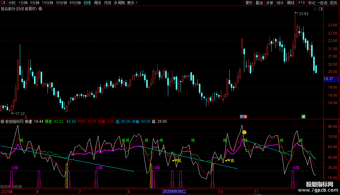 W底1赋值:统计15日中满足快速上穿25的天数>=2 AND 抄底=20