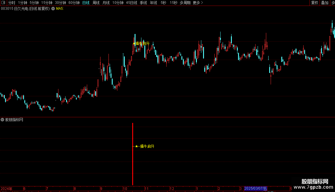 DRAWTEXT(擒牛启升,H,'★擒牛启升'),COLORYELLOW;