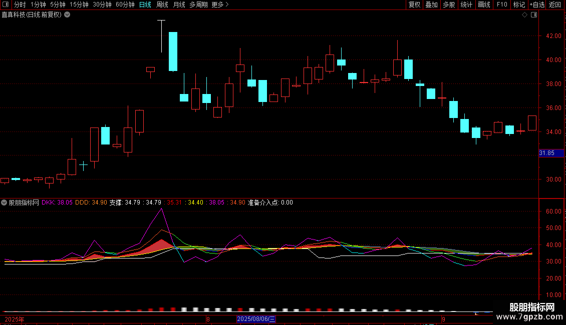 IF(DDD<=REF(DDD,1),DDD,DRAWNULL),COLOR33FF33,LINETHICK1;