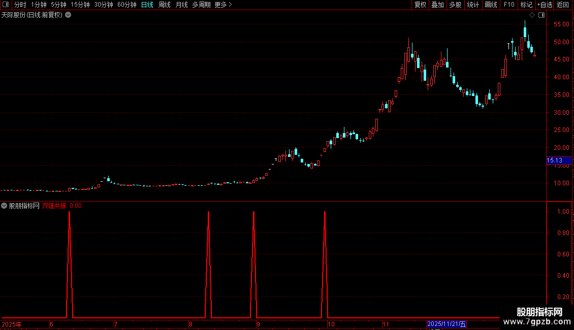 1.双雄共振指标是短线趋势与资金动能的双维度共振指标,核心功能是筛选出均线多头向上和资金主动进场的强势个股,精准捕捉短线上涨启动信号,适配短线、波段交易风格,尤其适合捕捉趋势初期的突破机会。