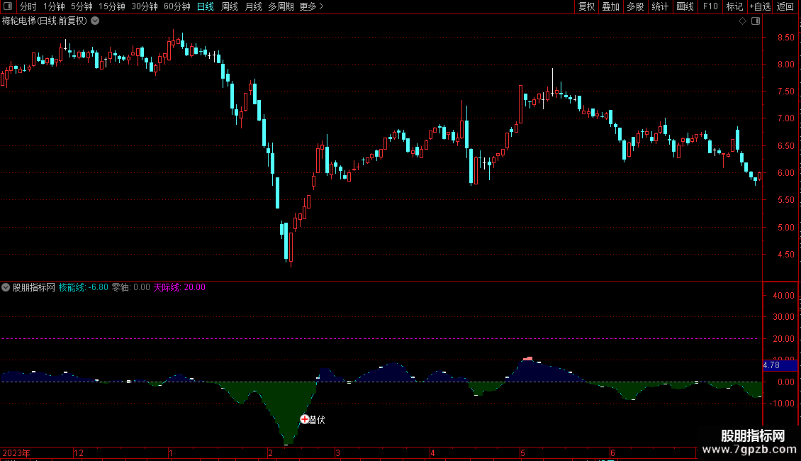 STICKLINE(核能线>0,0,核能线,3,0),COLOR330000;