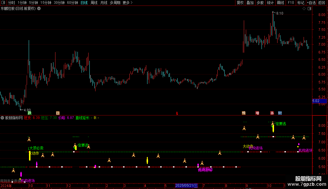 DRAWTEXT(VAR41C AND COUNT(VAR41C,30)=1,LOW*0.95,'大顶(底)') COLORWHITE;
