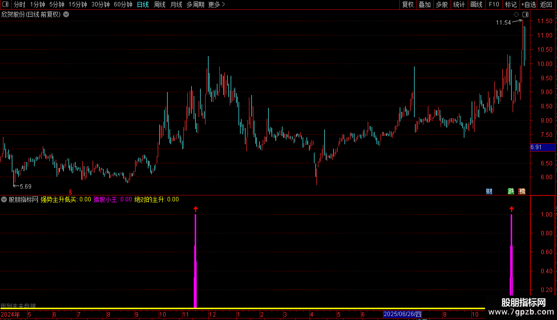 猎股小王:L<底部1 AND C<DSA AND 强势为王,COLORMAGENTA,LINETHICK2,LINESTICK;