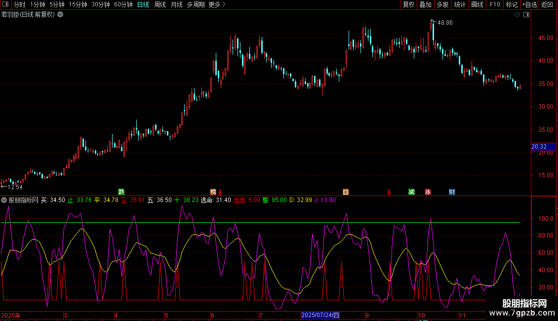 K:=SMA(RSV,3,1),COLORYELLOW,LINETHICK1;