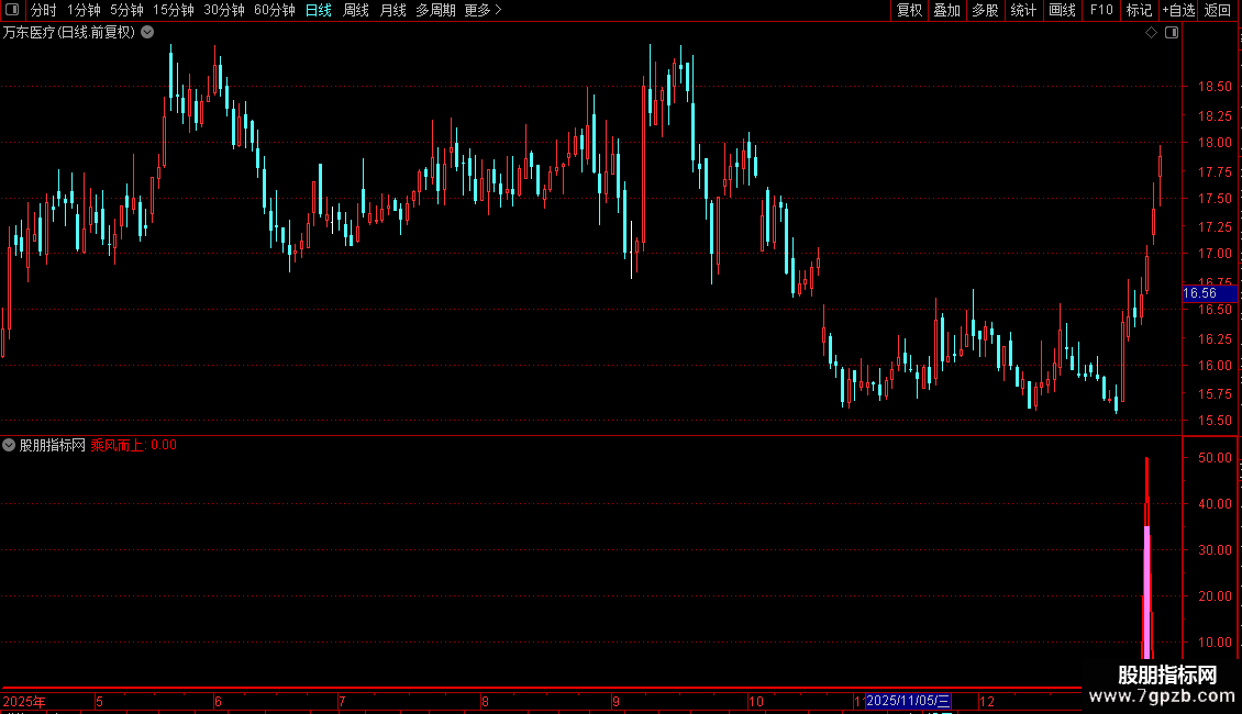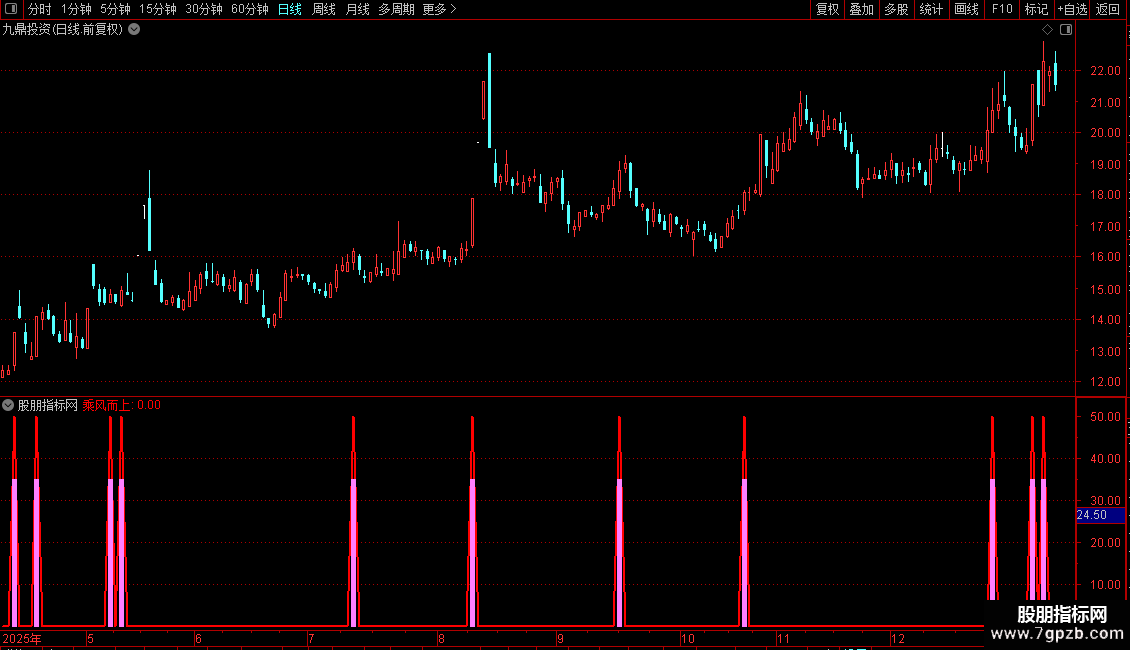 乘风而上:IF(BARSLASTCOUNT(HG22)=1 AND HG23,50,0),COLOR0000FF,LINETHICK2;