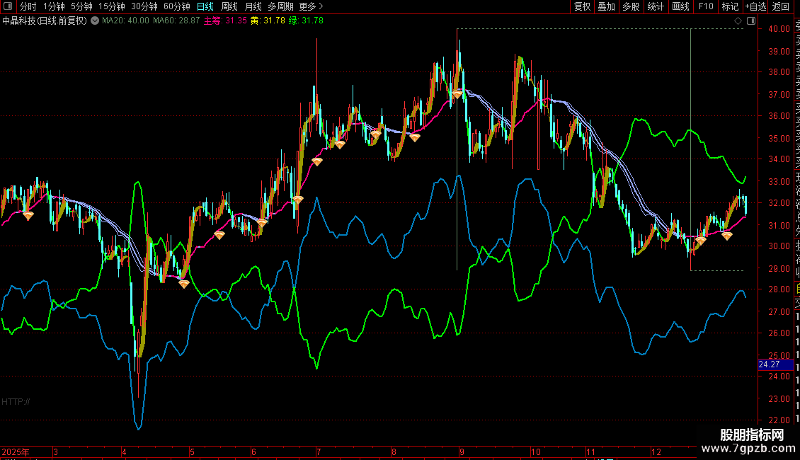 该指标核心包含高低线与资金力度线、散筹线、主筹导线。散筹和主筹用于精准衡量成交量的买入与卖出力度。当散筹大于主筹,市场处于上涨趋势;主筹大于散筹,则市场处于回调或下跌行情。当主筹高于前一日且绿线上穿黄线,同时收盘价高于散筹线时,即发出买入信号。