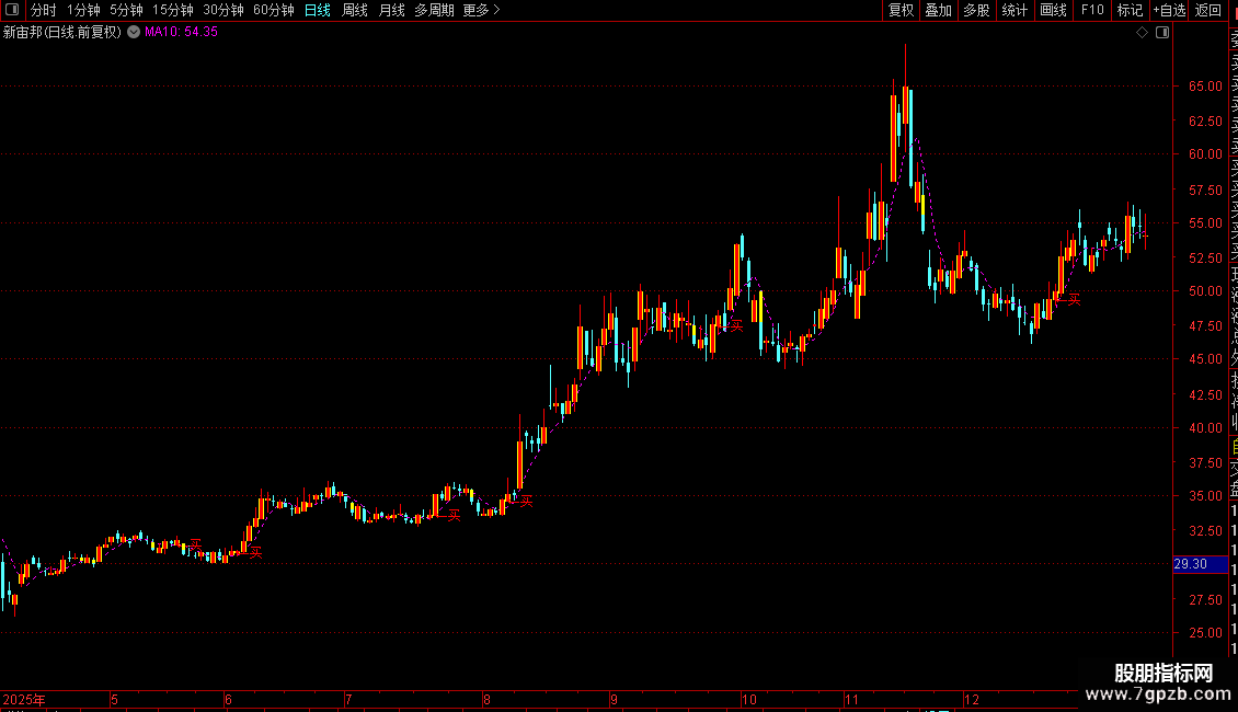 生命线:=MA(CLOSE,60),COLORYELLOW,LINETHICK2;