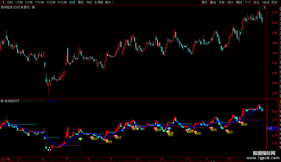 2. 信号识别:出现“启动”图标+文字,代表短期均线金叉且股价走强,可关注建仓;“进入”信号提示中期趋势转好,适合轻仓介入;“加仓”“突破”信号(突破480日高点)出现时,代表趋势确认突破,可加仓跟进;