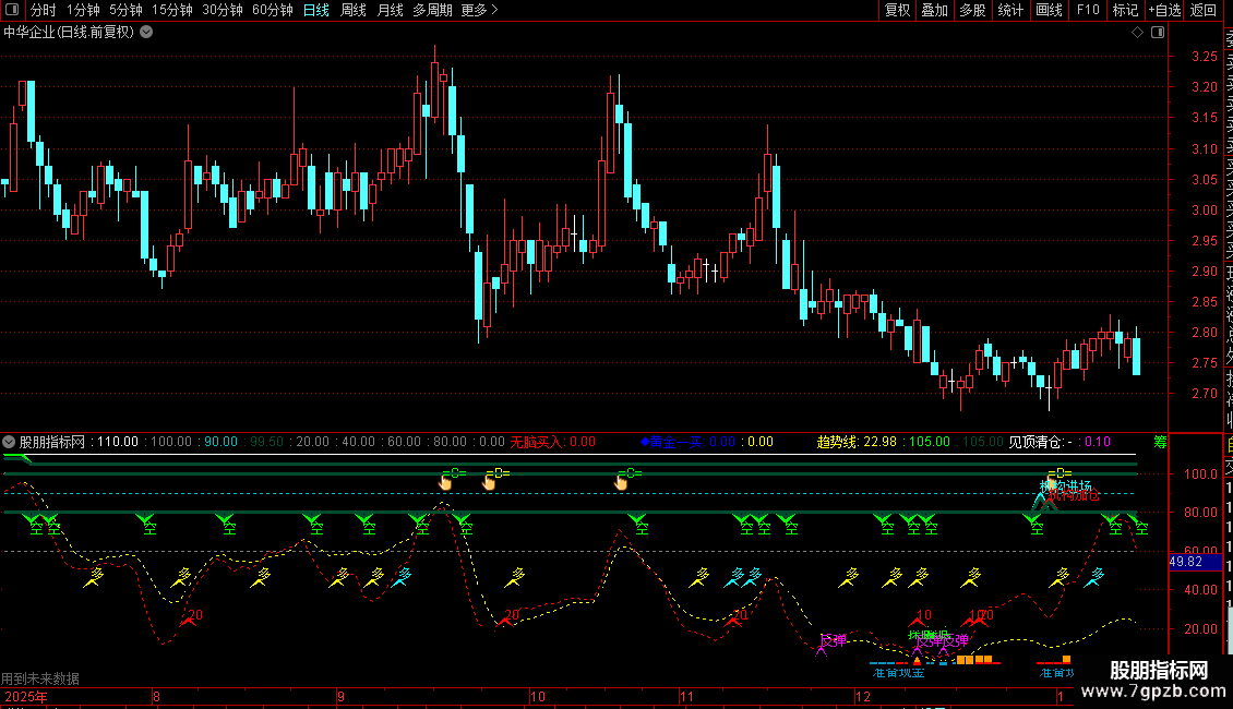 中线趋势:=EMA(短线趋势,9),DRAWNULL;