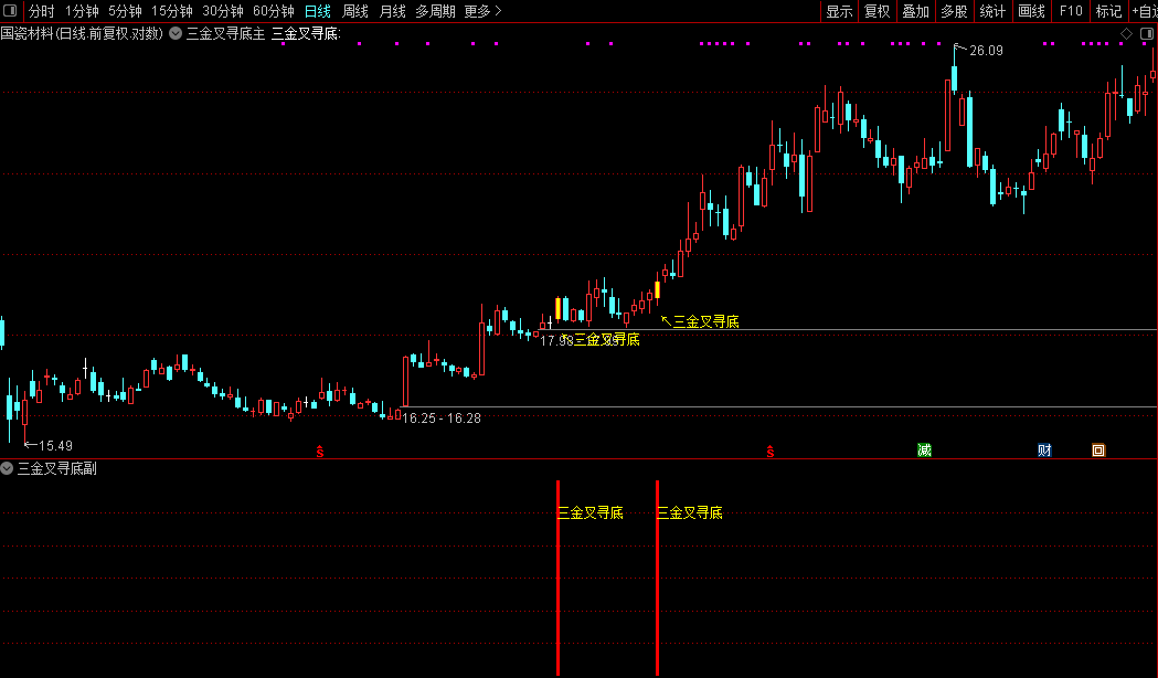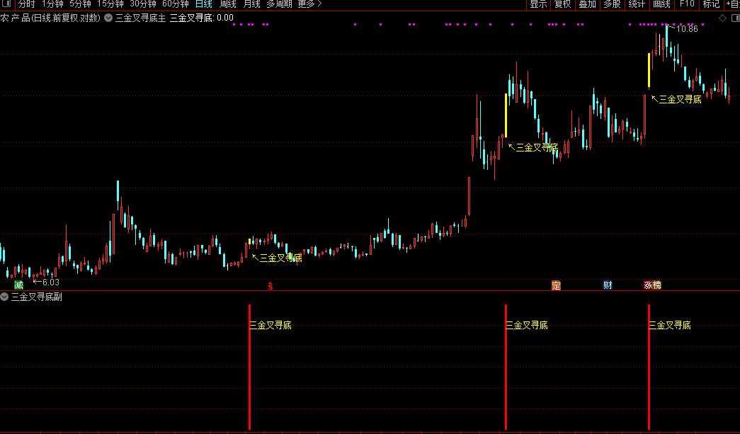 通达信【三叉寻底】主副/选股指标短线操作三金叉同时出现买入源码