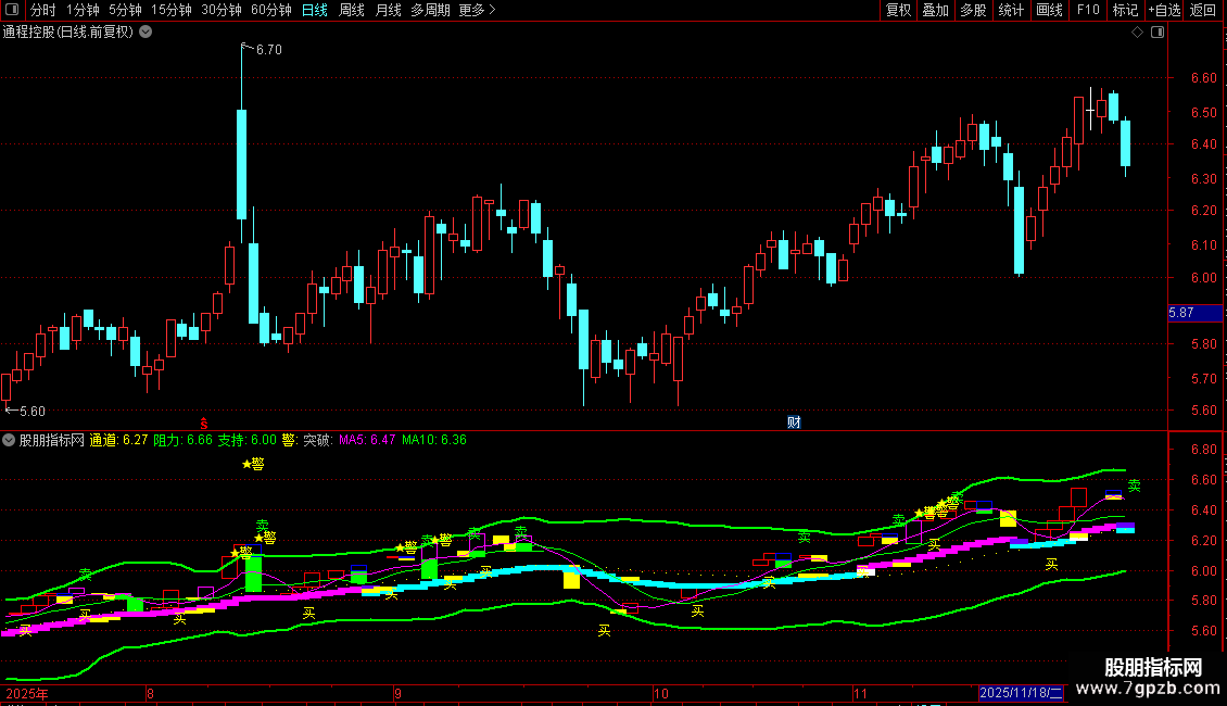 突破:DRAWTEXT(VARE<15 AND CROSS(VAR55,通道),LOW,'★突破'), COLORAAAAAA;