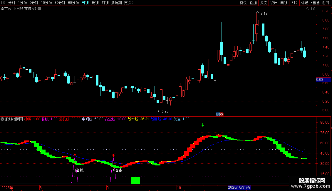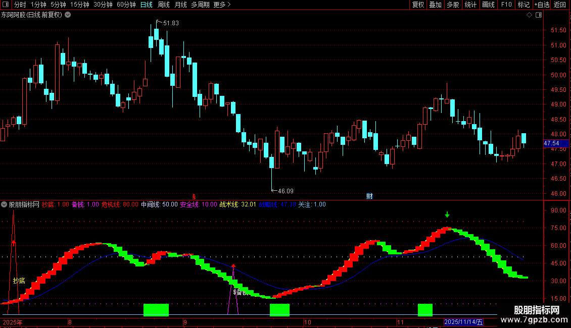 短线逃顶:=IF(I,0,1),COLORGREEN;
