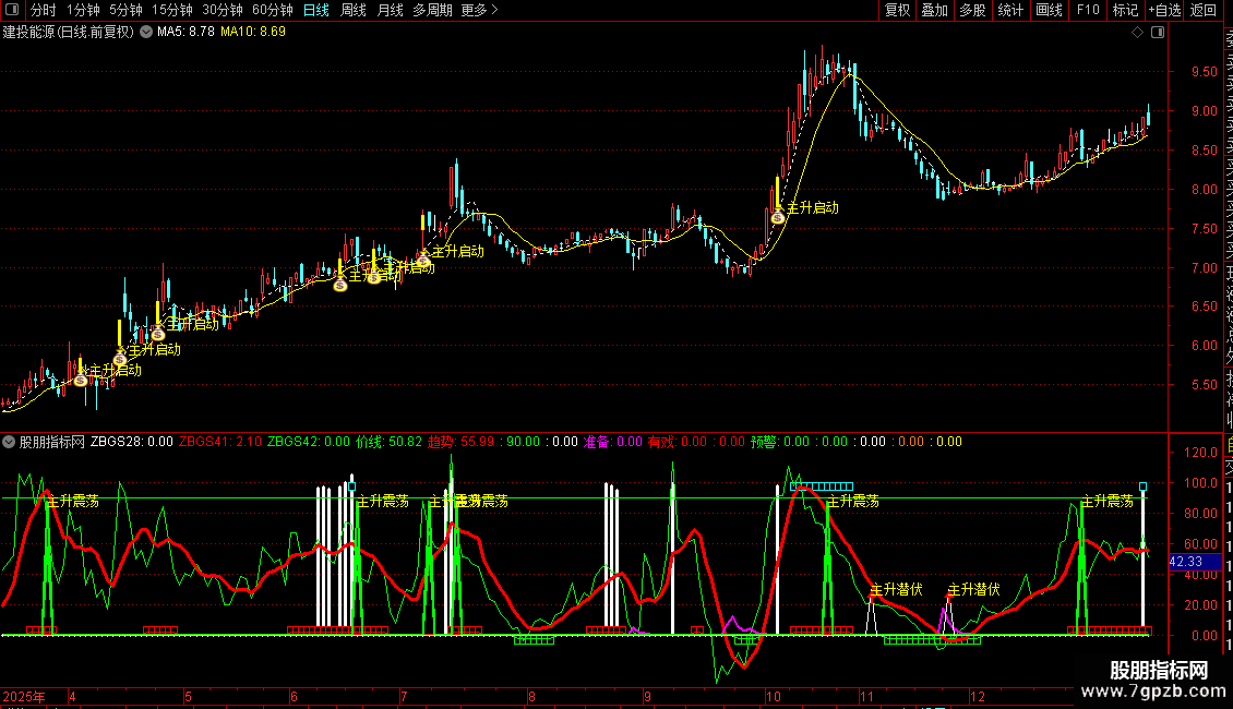 这套妖股必备套装指标是专门用于捕捉潜在妖股的实战工具。通达信潜伏妖股指标通过主图与副图的信号组合,精准提示买点。当副图显示主升潜伏信号时,即为理想的潜伏买入时机。更进一步,当主图出现主升启动信号,并与副图中的白色量能柱形成共振时,则构成了明确的启动买点。这款好用的潜伏妖股指标能有效辅助投资者进行决策,是寻找妖股的必备套装指标。