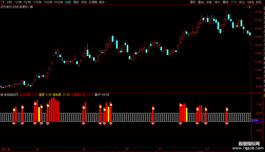 饱和度:IF(AMOUNT/C/(HHV(AMOUNT,20)/HHV(C,10))*100>100,100,AMOUNT/C/(HHV(AMOUNT,20)/HHV(C,20))*100),NODRAW,COLORYELLOW;