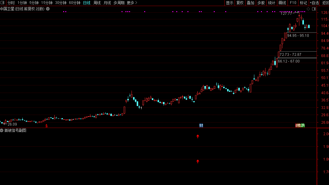 首破信号,副图双箭头出现,一般就是即将启动的信号,选股指标是选出双箭头的位置的。