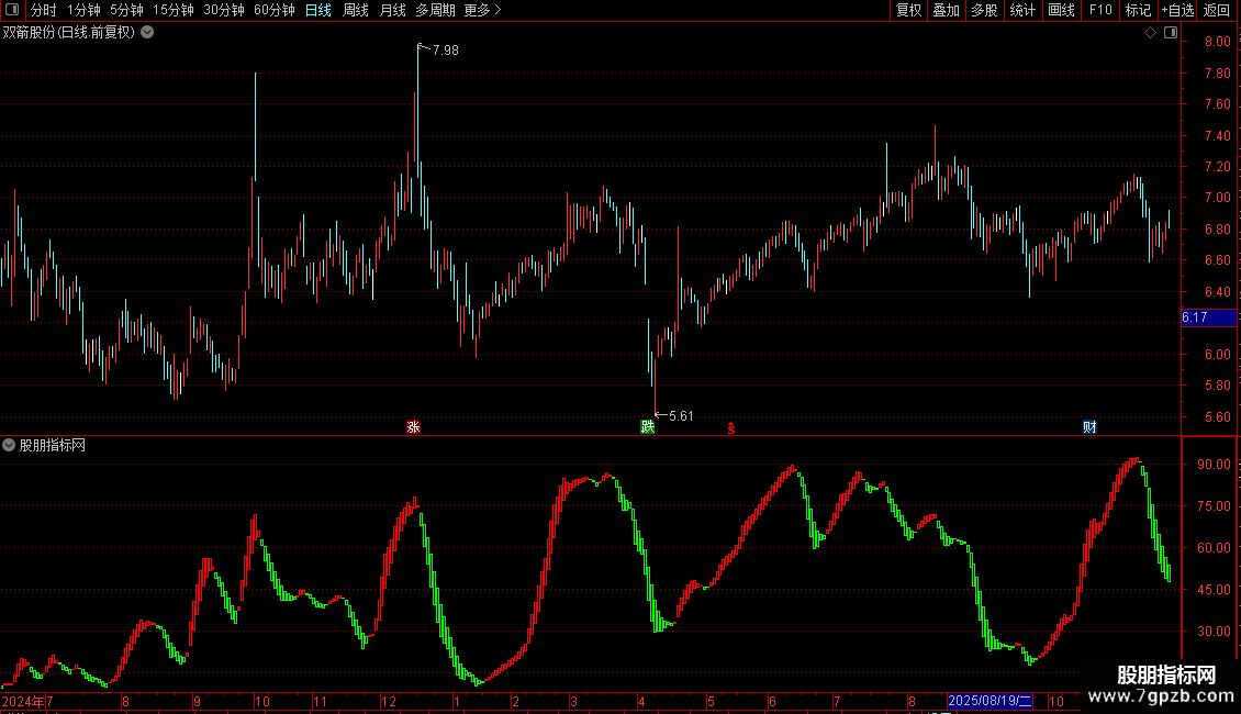 VAR17:=EMA((VAR11-VAR13)/(VAR16-VAR13)*100,8);