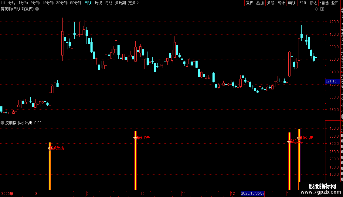 指标主要用于识别具备强势启动特征的个股。其策略核心是在股价经历低位盘整、前一日未涨停、当日开盘涨幅不过大且成交量明显放大的背景下,捕捉出现大阳线突破并站稳多条均线的买入信号。系统通过多重条件过滤,排除一字涨停或高开风险,聚焦于安全边际较高、动能充沛的“擒妖”机会,并在满足条件时给出明确的视觉提示。