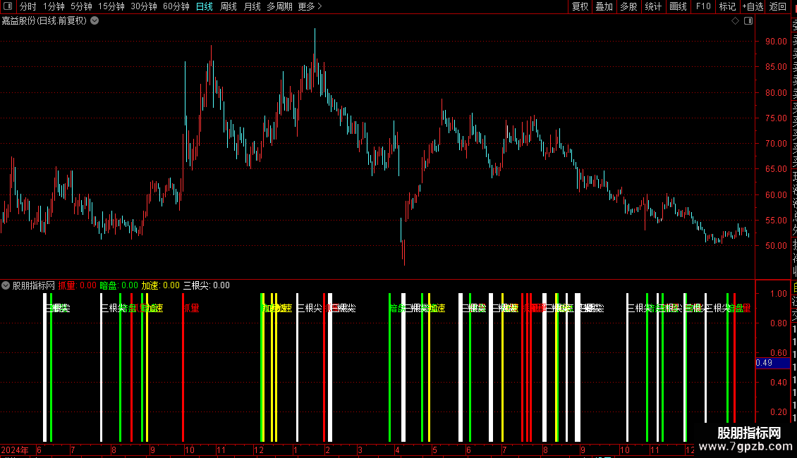 三根尖:IF(三根尖条件,1,0),COLORWHITE,NODRAW;