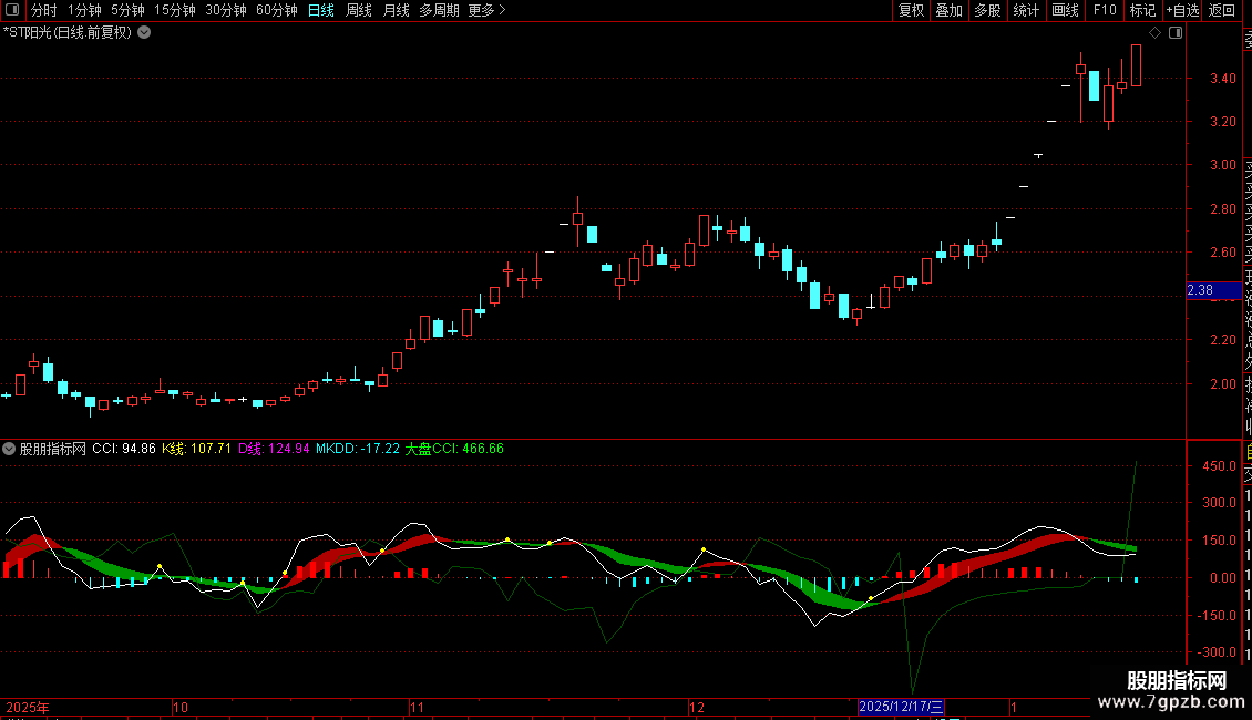 指标主要用于识别个股在大盘走弱时的逆势表现。它通过对比个股与大盘的CCI(顺势指标)走势,结合K、D平滑线及其差值变化,判断个股是否出现独立于市场的强势信号。当个股动能增强而大盘疲软时,可能预示短期反弹或抗跌机会。操作上可关注K线上穿D线、且CCI明显强于大盘时的介入点,适合捕捉结构性行情中的强势标的。