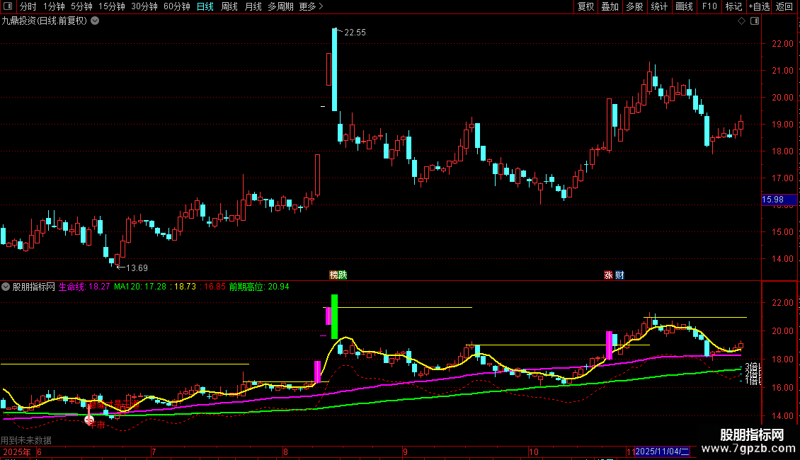 生命线:MA60,LINETHICK2,COLORMAGENTA; {60日线为洋红色}