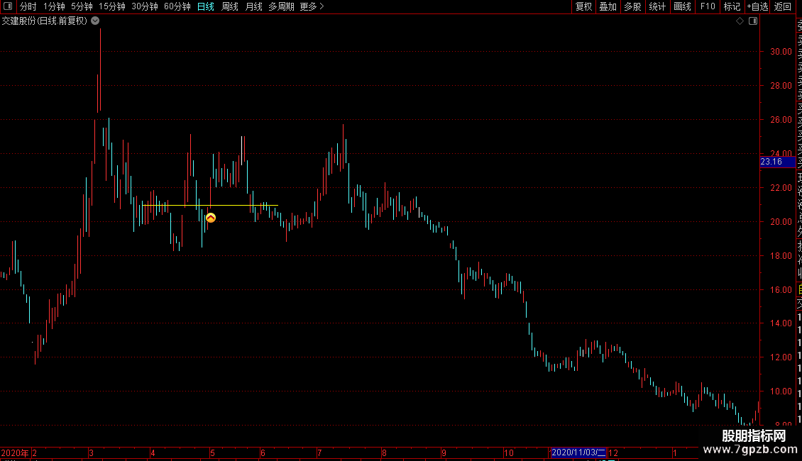 2、失败信号处理:主图黄色横线兼具止损与二次介入参考作用。股价调整后重新突破该线,可视为趋势转强信号。
