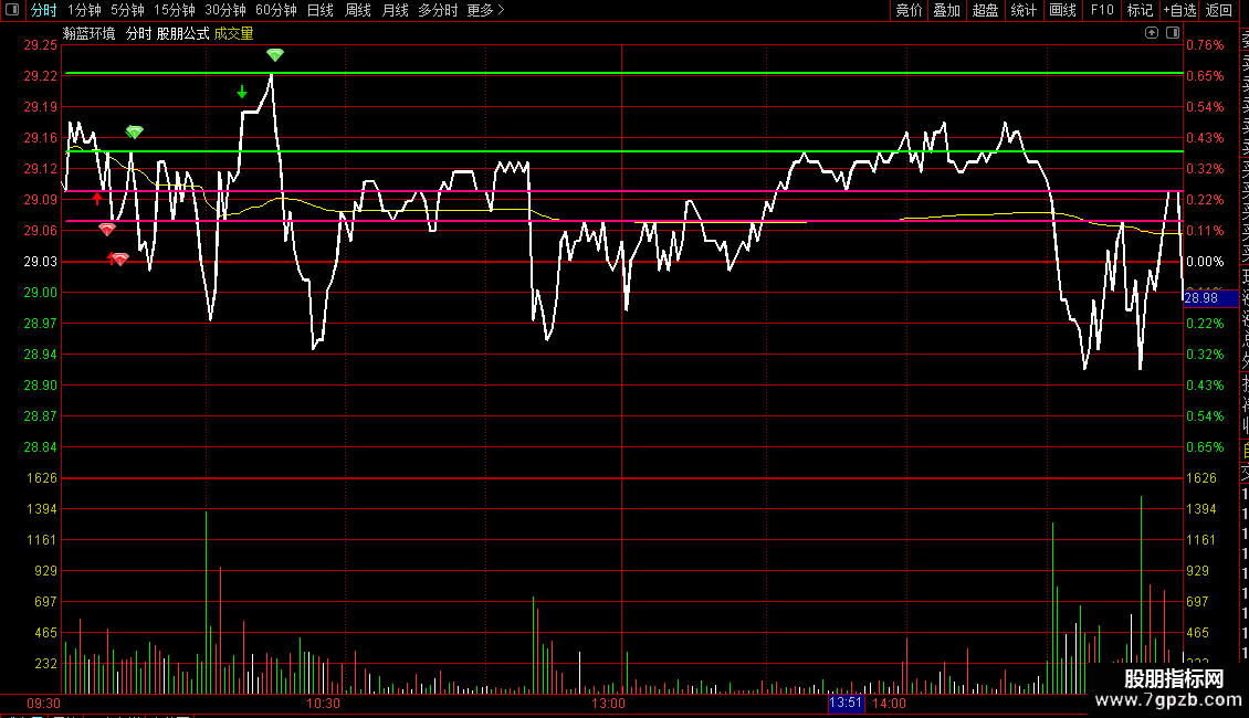 在分时主图中,红色向上箭头代表潜在的低吸机会临近,提示投资者可关注买入时机;绿色向下箭头则表示高抛机会出现,适合考虑止盈或减仓。当出现红色钻石信号时,视为明确的入场信号;而绿色钻石则作为出场信号,提示及时离场锁定收益。