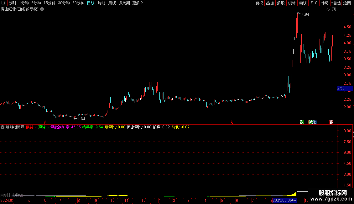 量能饱和度:IF((AMOUNT/C)/(HHV(AMOUNT,20)/HHV(C,20))*100>100,100,(AMOUNT/C)/(HHV(AMOUNT,20)/HHV(C,20))*100),NODRAW;