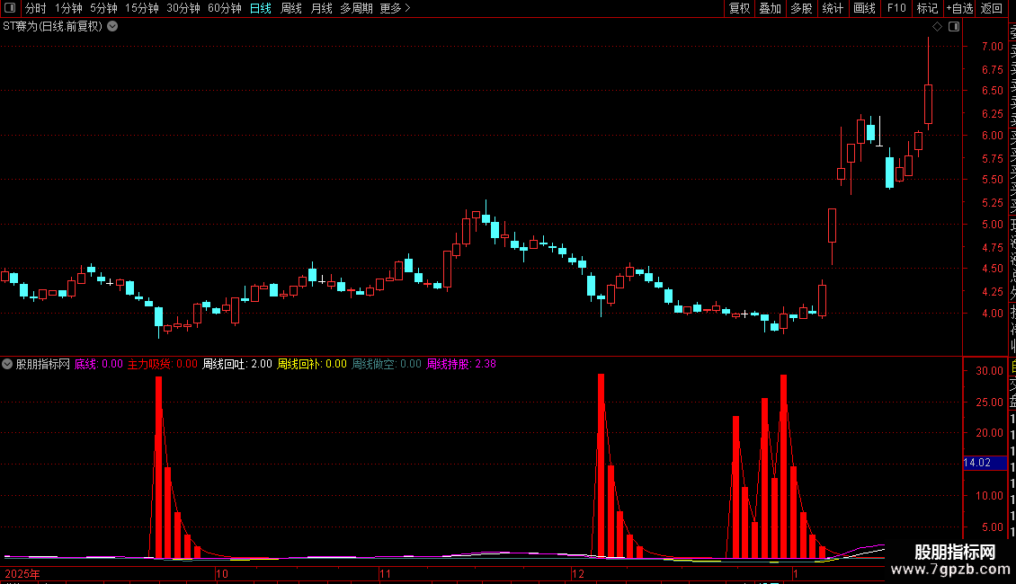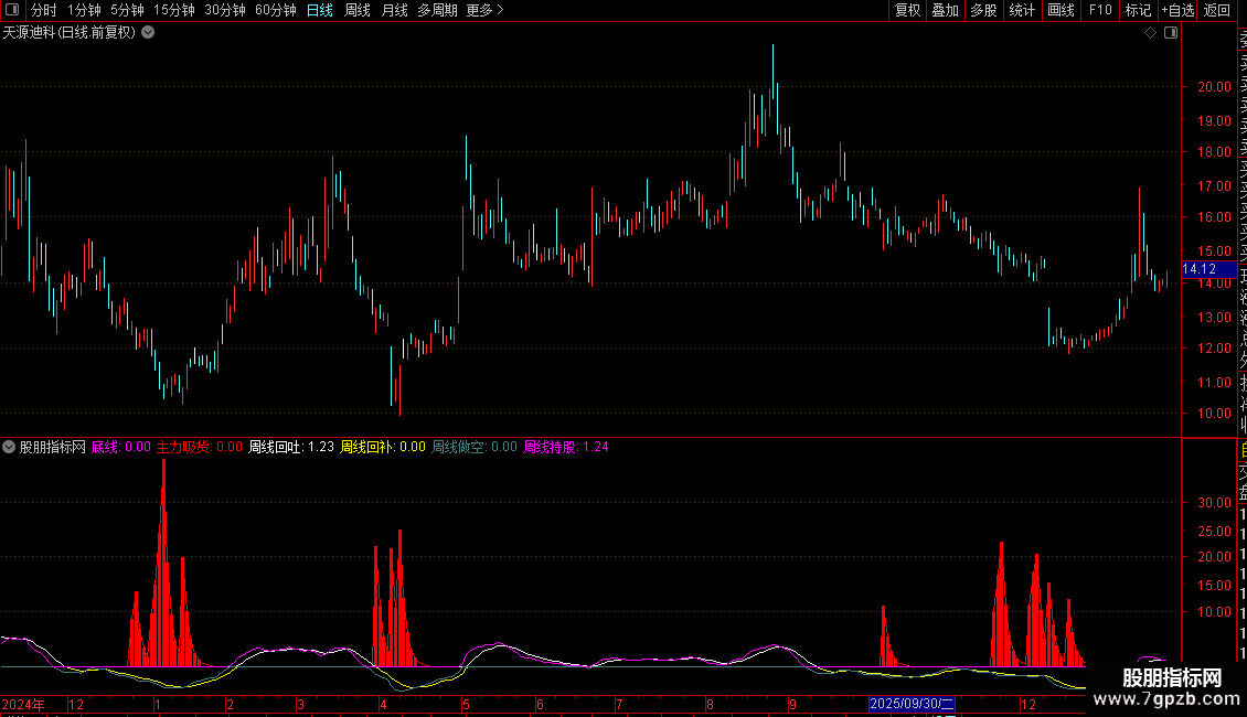 2. 辅助判断:“周线回补”(黄色)出现时,代表短期回调到位,可强化抄底信号;“周线持股”(洋红色)持续在线,说明底部企稳,持股性价比高;