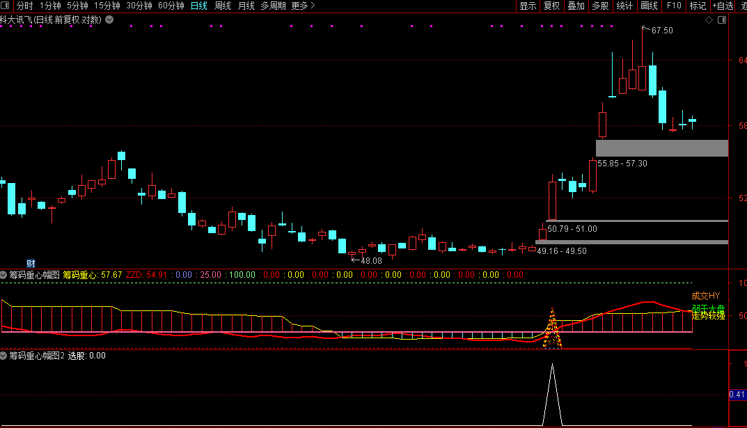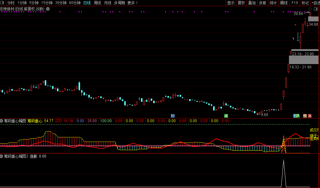 通达信『筹码重心』副图/选股筹码指标捕捉个股趋势启动点源码
