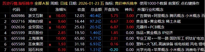 通达信【竞价神兵】集合竞价排序/选股指标筛选竞价强势潜力股源码