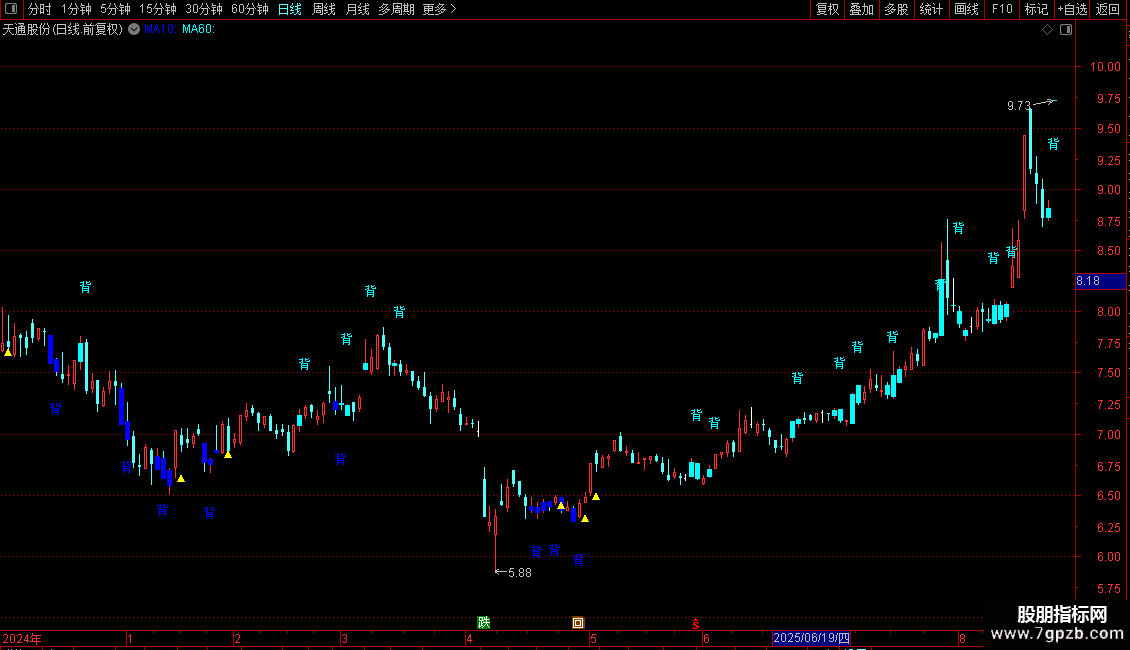 DRAWTEXT(升 AND EXIST(VAR2,4) AND 高,L,'△'),COLORMAGENTA;