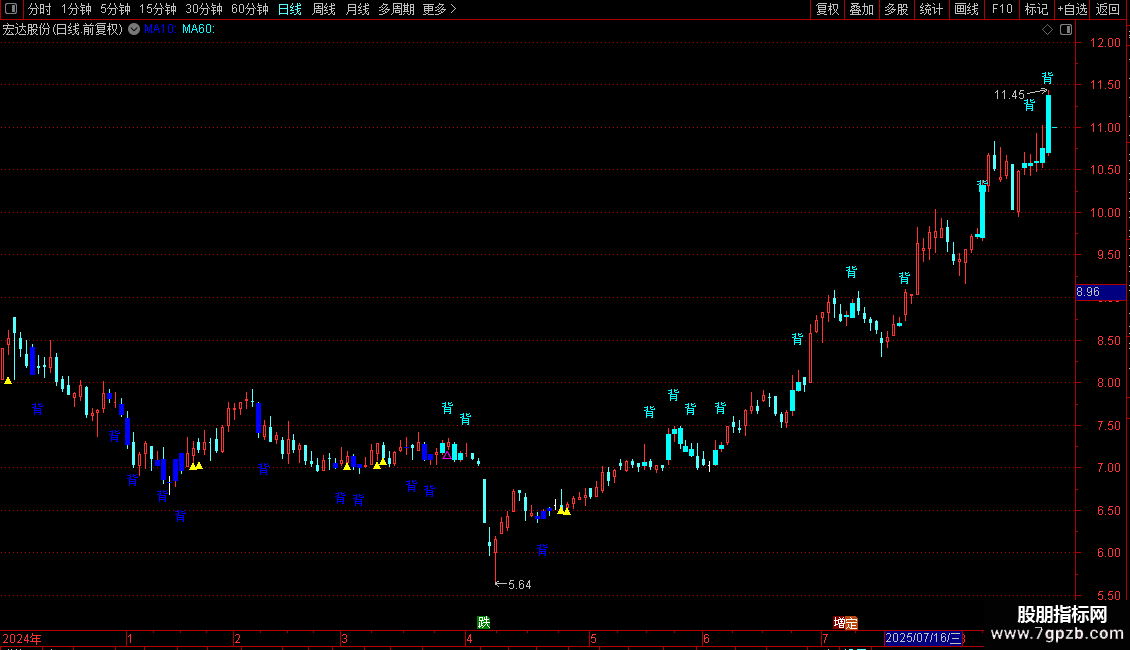 高:=COUNT(REF(M1,1)<REF(M1,2),5)>2 AND M1>REF(M1,1) AND D1>REF(D1,1);