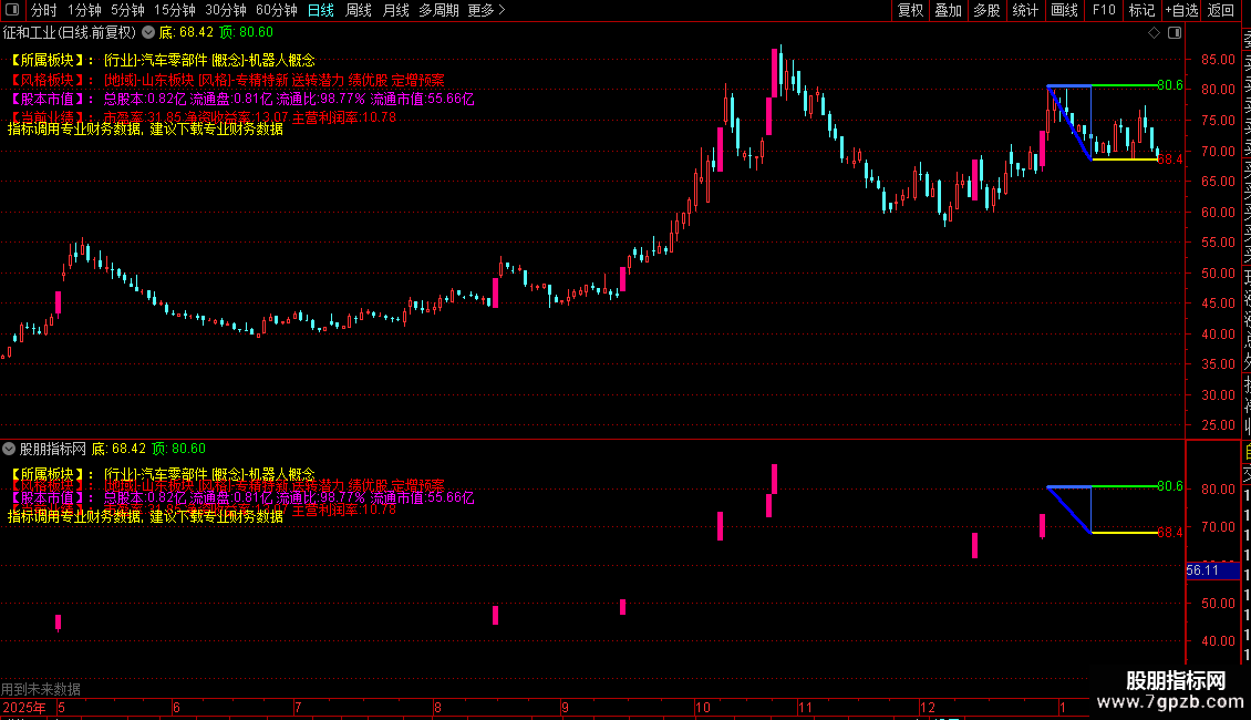 DRAWTEXT_FIX(ISLASTBAR,0.005,0.12,0,股本市值),COLORMAGENTA;