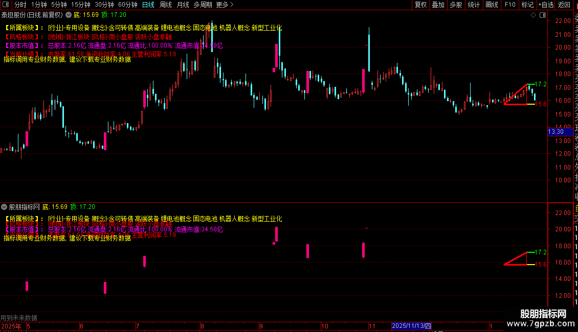 指标主要功能是整合个股所属行业、概念、地域及风格板块信息,并展示关键财务数据(如总股本、流通盘、市盈率、净资产收益率、主营利润率等),帮助投资者快速了解公司基本面。同时,通过识别龙虎榜资金动向和涨停信号,提示短期交易机会。此外,还构建了高低点结构分析系统,自动标记近期关键支撑与压力位,并在价格突破前高时发出买入信号。