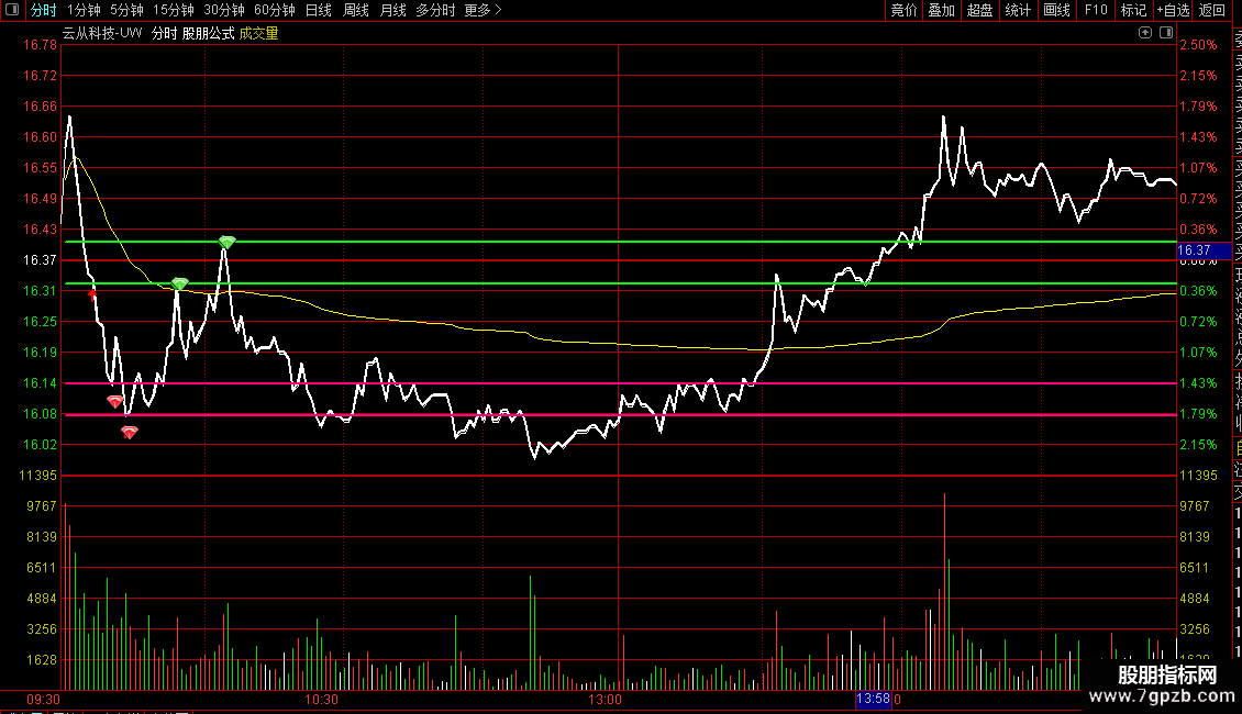 分时1:CONST(SUM(IF(VAR15,REF(C,1),DRAWNULL),0)),COLOR00FF00,LINETHICK2;