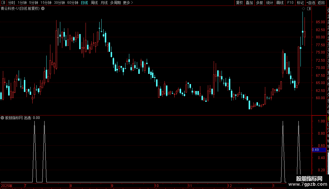 量能爆发:=V/REF(V,1)>1.5 AND V>MA(V,5);