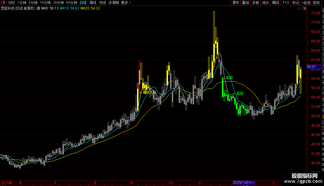 次X_BA:=MA(LOW,20)*1.1,COLORYELLOW;