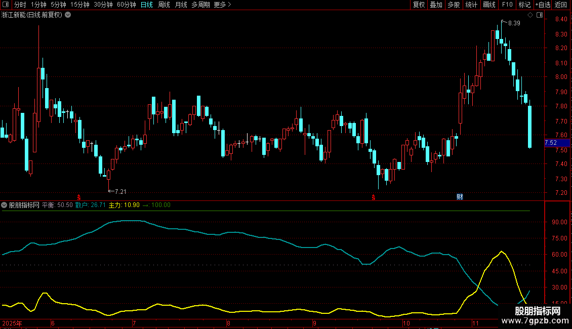 DRAWICON(CROSS(主力,散户) AND 主力>50,平衡,25);