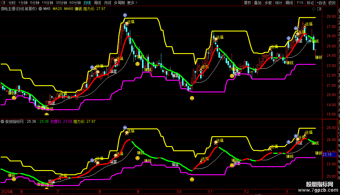 2. 关键价位:洋红粗线=【支撑价】,黄色粗线=【阻力价】,股价回踩支撑企稳做多,触碰阻力承压止盈/减仓。