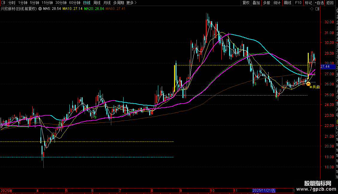 起爆线:EMA(HHV(C,10),30),COLORMAGENTA,LINETHICK2;