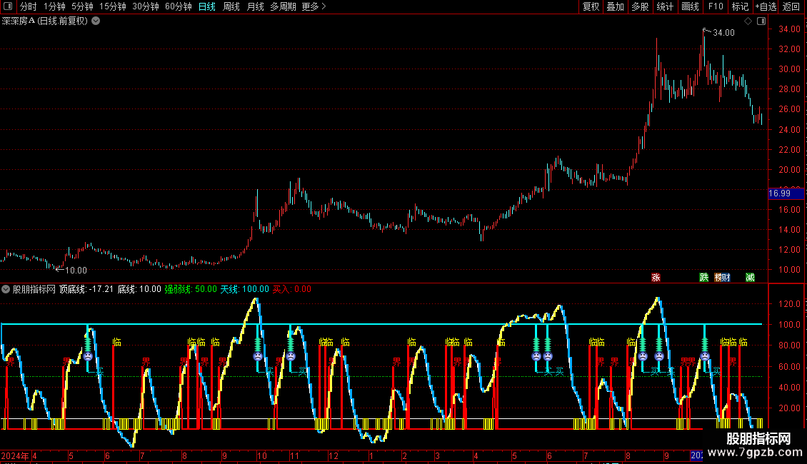 STICKLINE(REF(顶底线,1)<顶底线,顶底线,REF(顶底线,1),1.2,0),COLOR11DDDD;