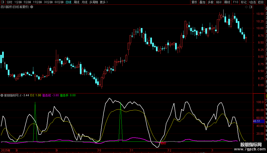 该指标是设计巧妙的短线超跌反弹利器。它通过J线穿越零轴,价格大幅偏离均线即狙击线小于等于负七,以及MACD超跌状态确认这三重过滤机制,来寻找高胜率超跌反弹机会。