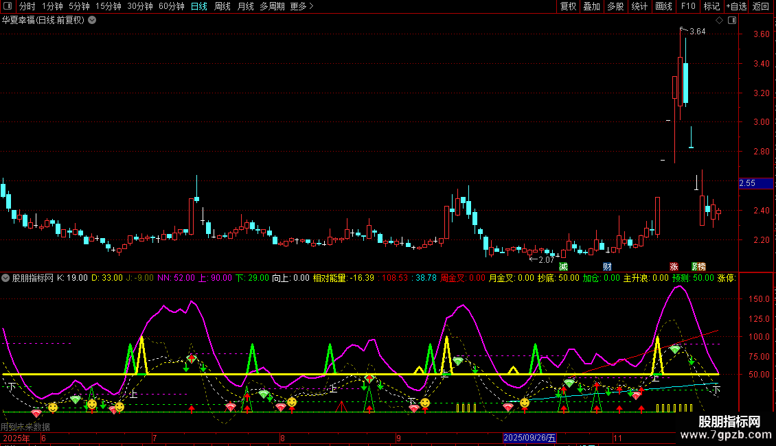 月金叉:IF(CROSS(VAR0006,VAR0007),20,0)LINESTICK,COLORYELLOW;