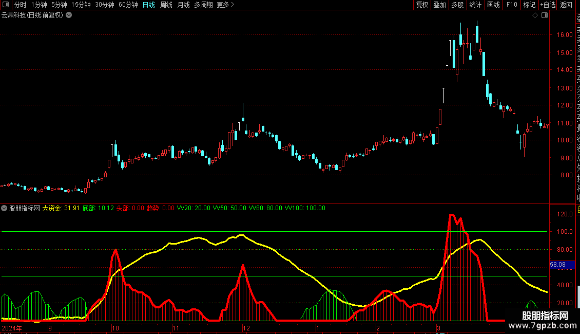 大资金:VAR3*(-1)+100,COLOR00FFFF,LINETHICK3;