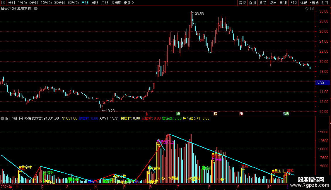 DRAWTEXT(梯量柱,VOL*0.1,'↖梯柱'),COLORYELLOW;