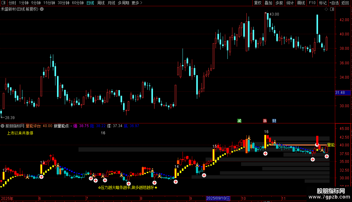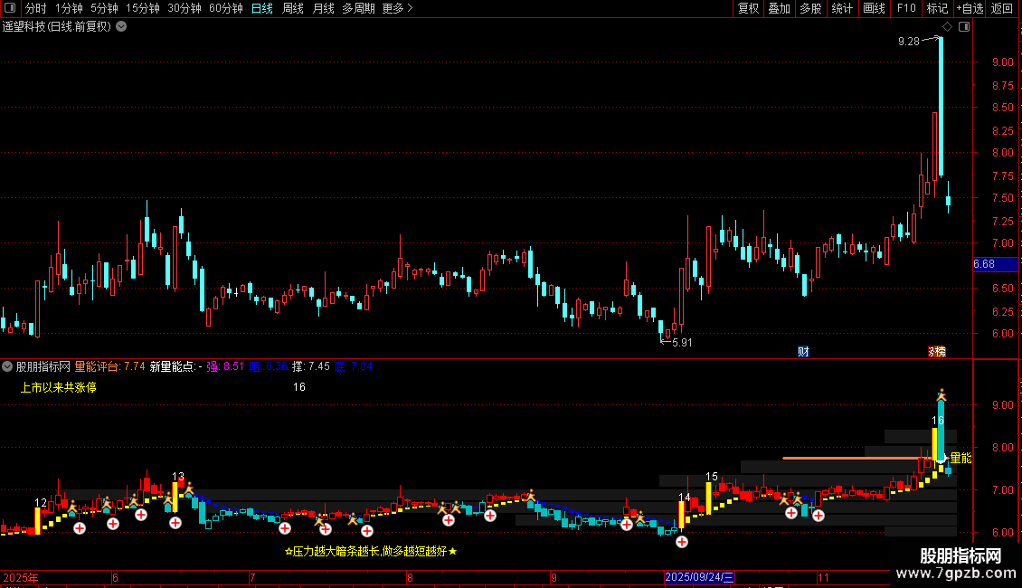 DRAWTEXT(CURRBARSCOUNT=98,LOW*0.88,'☆压力越大暗条越长,做多越短越好★'),COLORYELLOW;