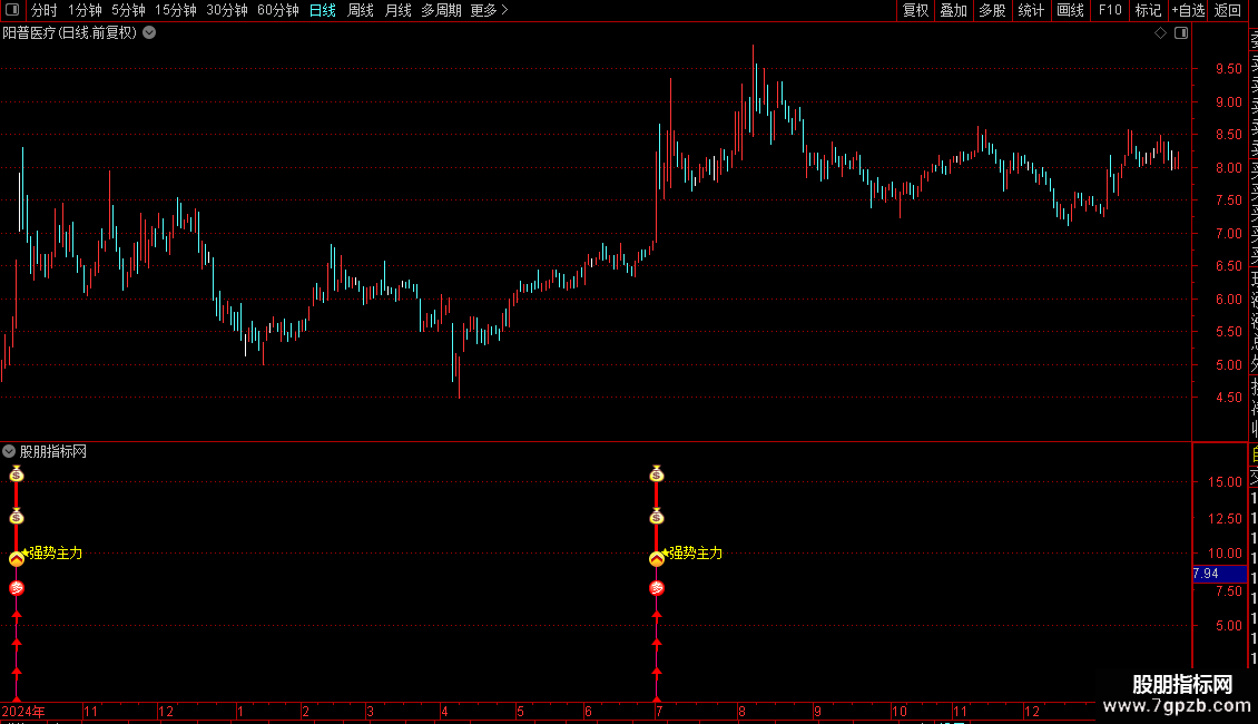指标主要用于筛选符合主力资金偏好的强势个股。通过价格在近期高低点中的相对位置构建动量信号,结合KDJ金叉形态、流通市值规模、股价区间、非ST/创业板属性以及涨停特征等多重条件,综合判断是否属于主力重点介入的标的。当所有条件同时满足时,在副图中高亮提示“主力权重”信号,辅助投资者捕捉潜在爆发股。