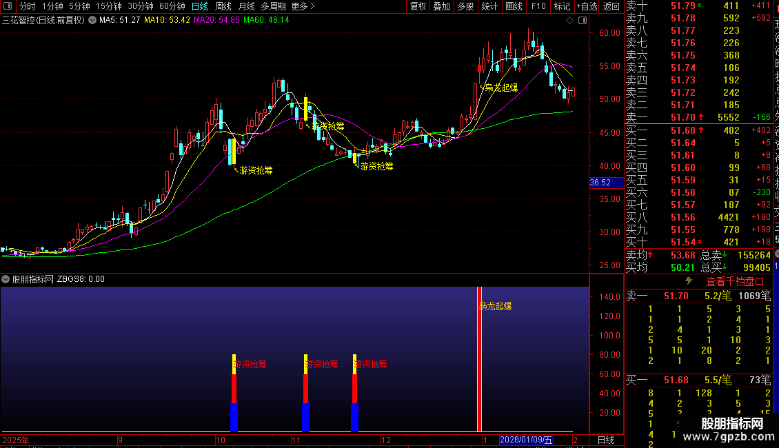 DRAWTEXT(ZBGS8,L*0.99,'↖游资抢筹'),COLORYELLOW;