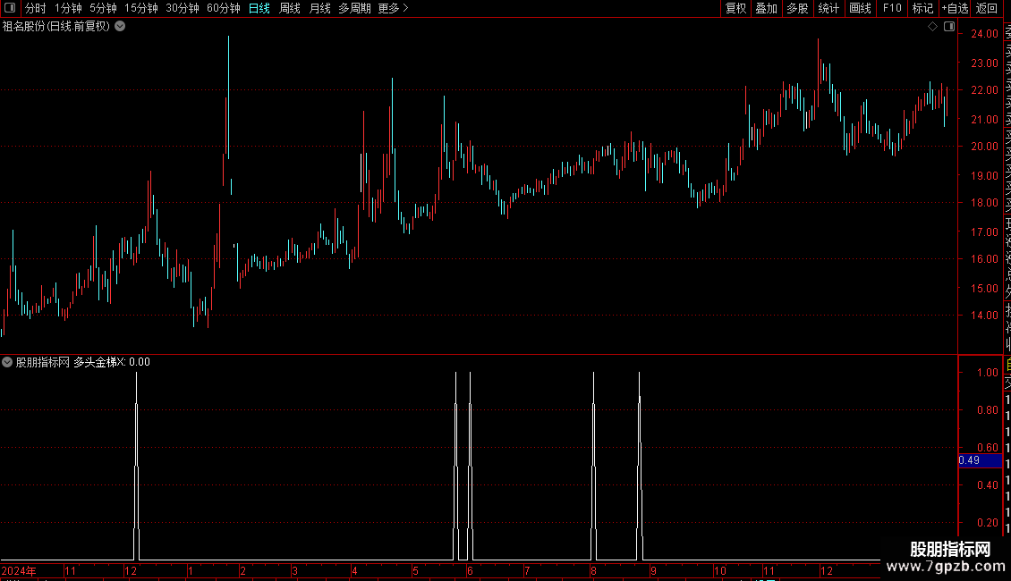 多头金梯X:REF(VAR0< VAR10 AND VAR0>OPEN,1) AND VAR0>VAR11 AND EVERY(VAR22,3) AND VAR0>OPEN AND VAR5;